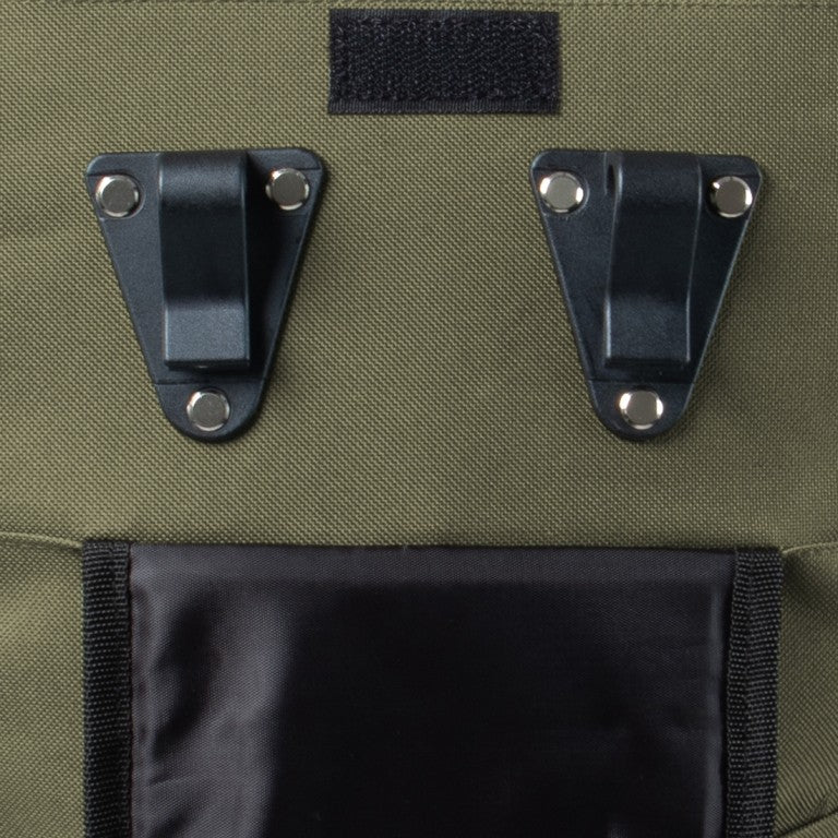 Wat deze tas echt bijzonder maakt, zijn de fietshaken aan de achterzijde. Hiermee bevestig je de tas eenvoudig aan de bagagedrager van je fiets.
